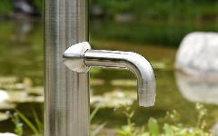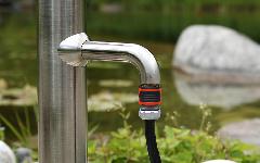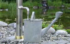 Gartendusche mit Wasserhahn zur Befüllung von Giesskanne oder zum Anschluss vom Gartenschlauch mit integriertem Schnellverluss.